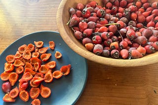 or what? some questions, thoughts on practice, a small hello, a moody & watery winter playlist, and the brightness of rosehips, for you.